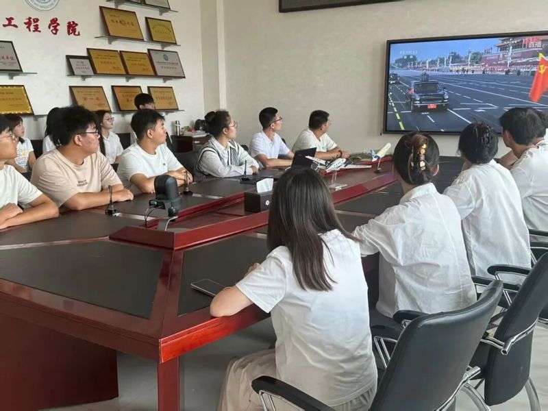 上午,学院师生们满怀期待地齐聚在学院会议室。当大屏幕上出现庄严的阅兵式现场,整齐的方阵、先进的装备一一展现,现场气氛瞬间被点燃。师生们目光紧紧锁定屏幕,被阅兵式的宏大场面深深震撼。那铿锵有力的步伐、振奋人心的口号,仿佛将大家带回到了那个战火纷飞的年代,让人们深刻感受到了先辈们为了国家独立和民族解放所付出的巨大牺牲。